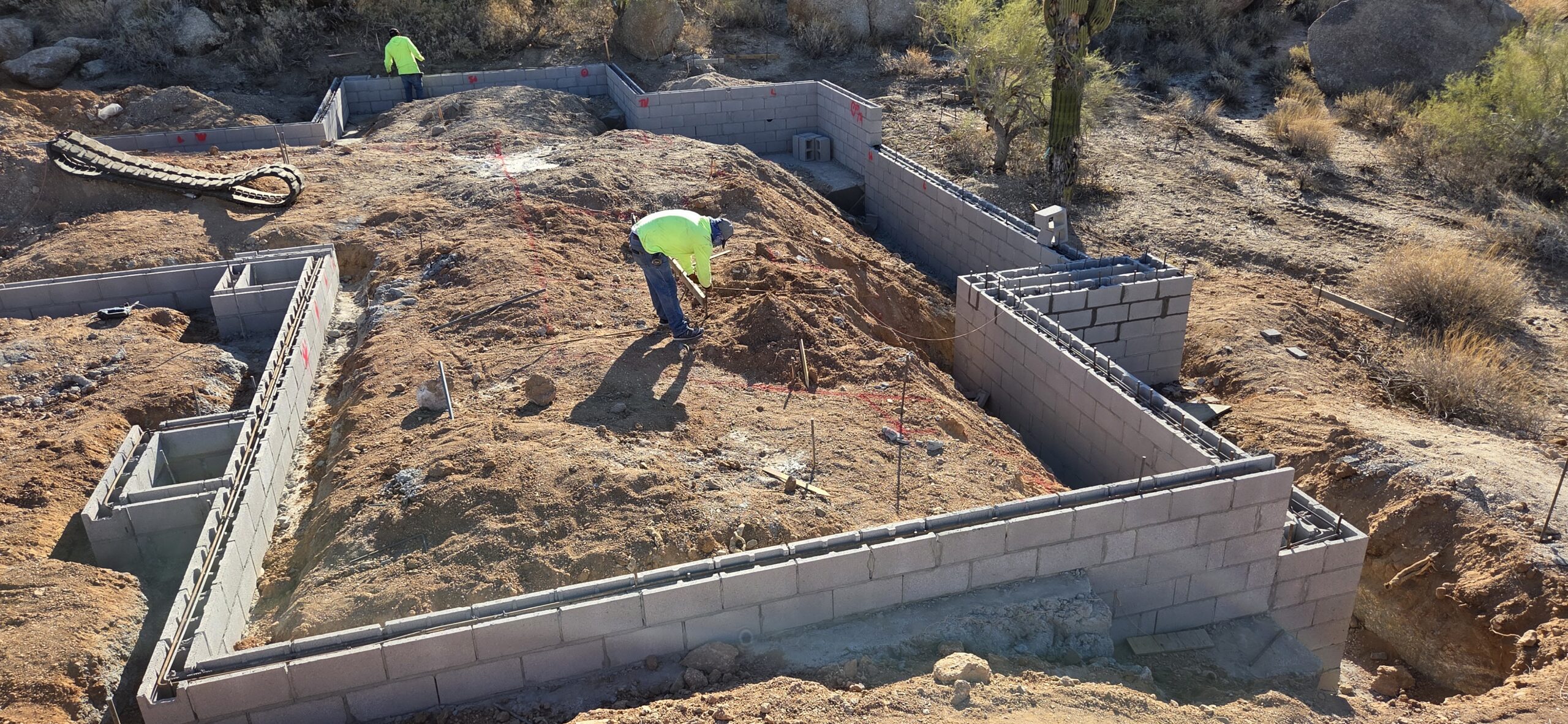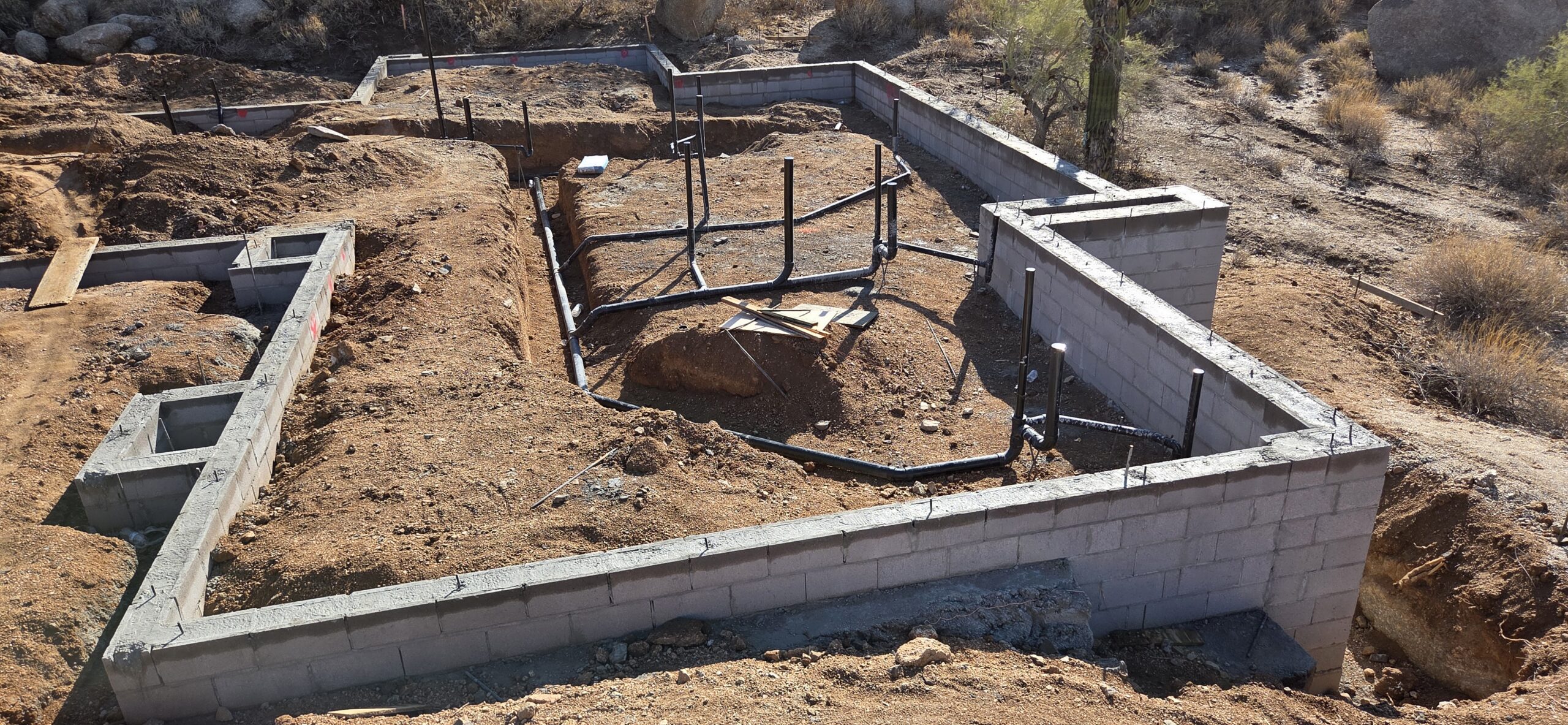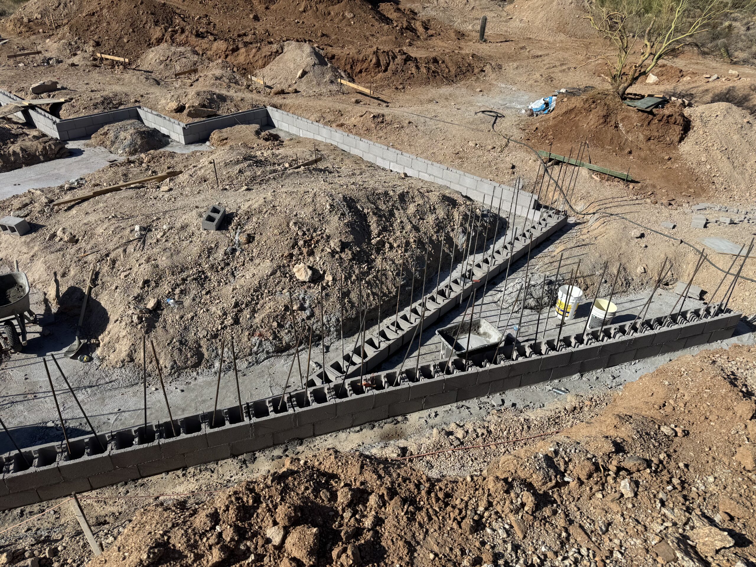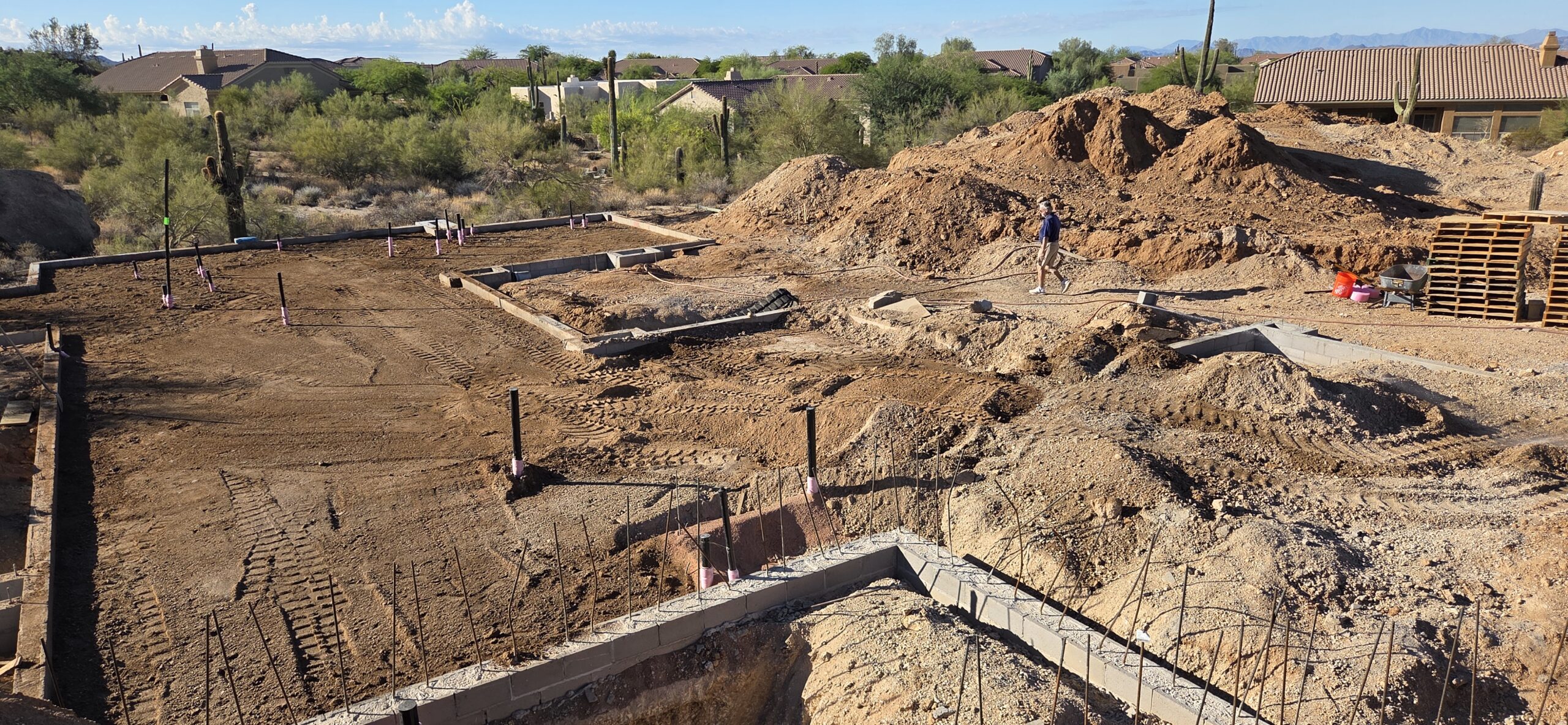 Inspection for stem walls passed and walls have been grouted. Rough plumbing has passed inspection. Shading over plumbing inspection is next. Then lot will be leveled and ab will be added and compacted making it ready for foundation and footing pour.