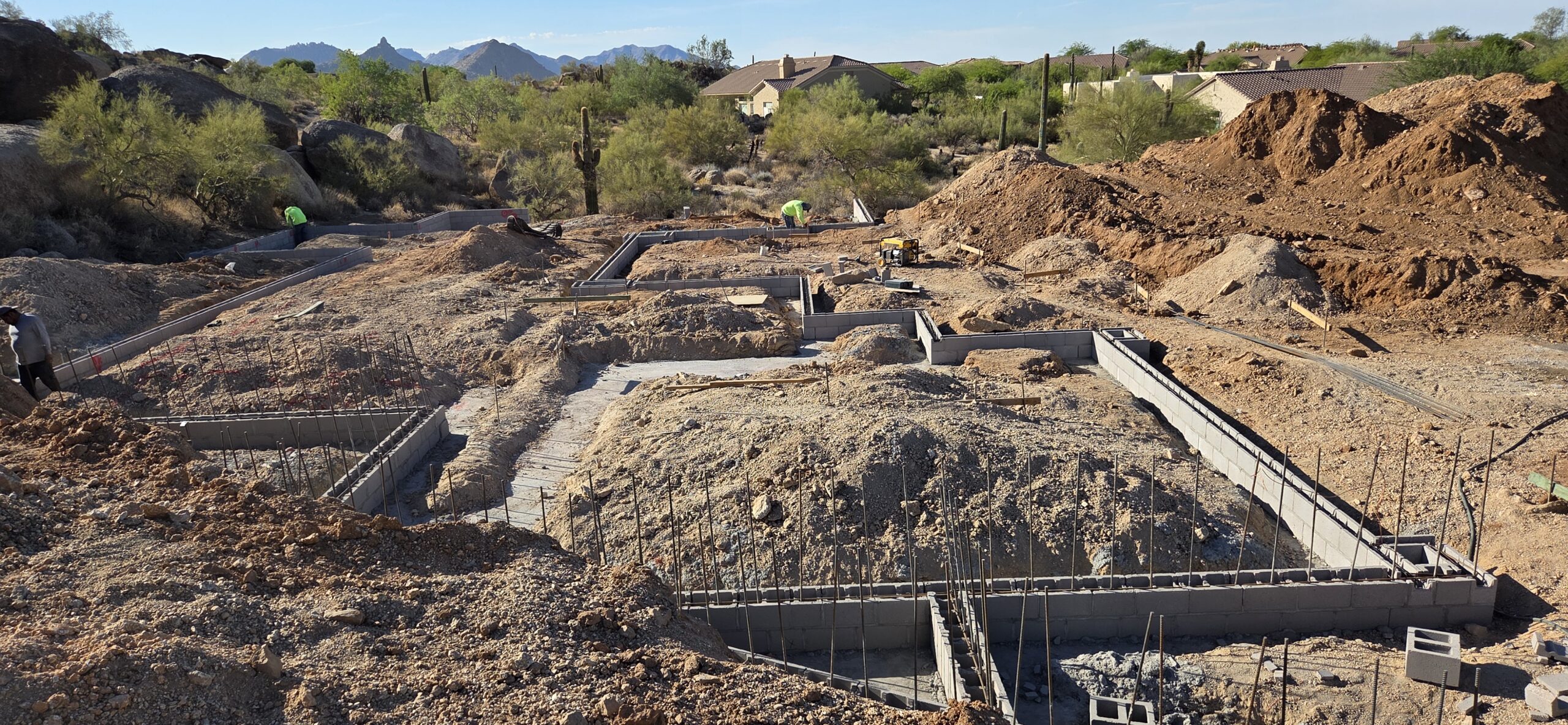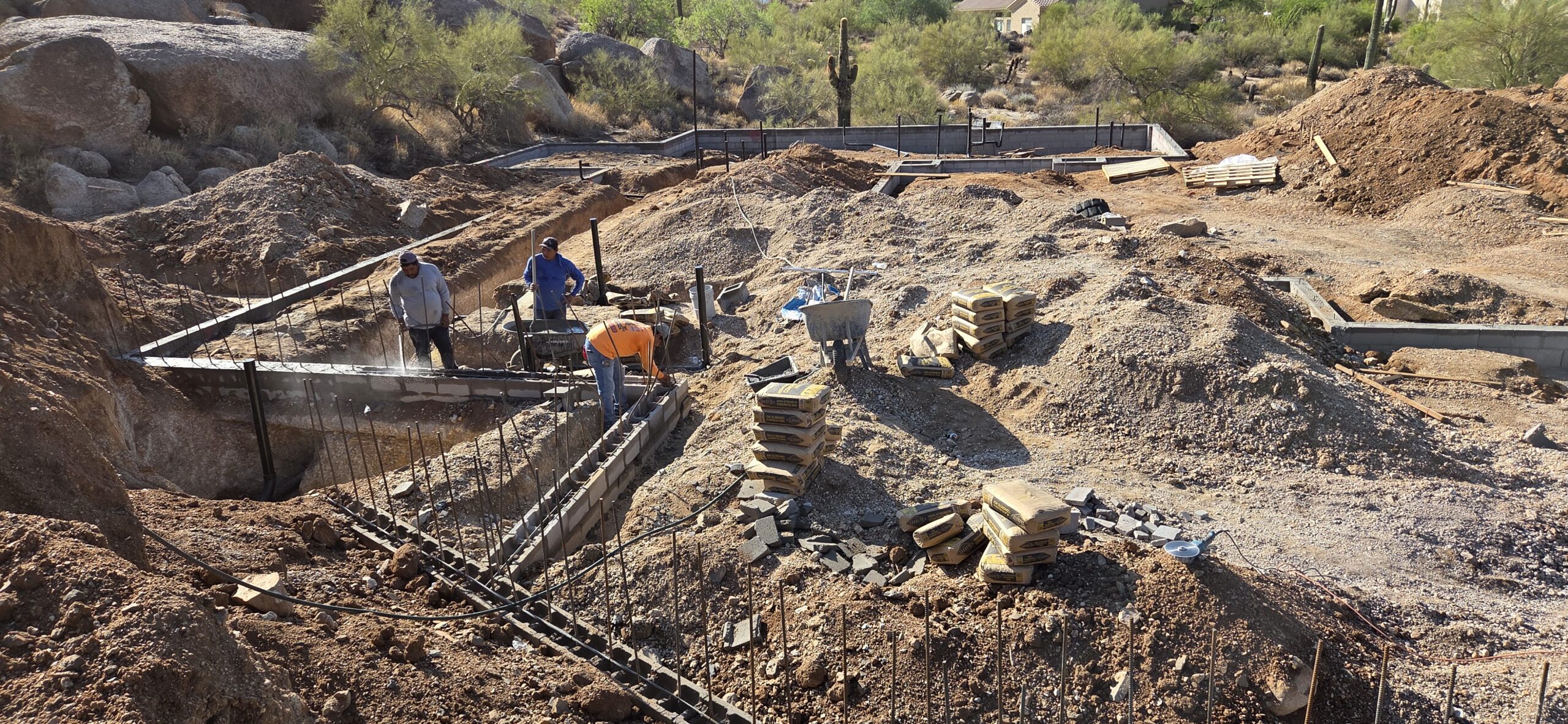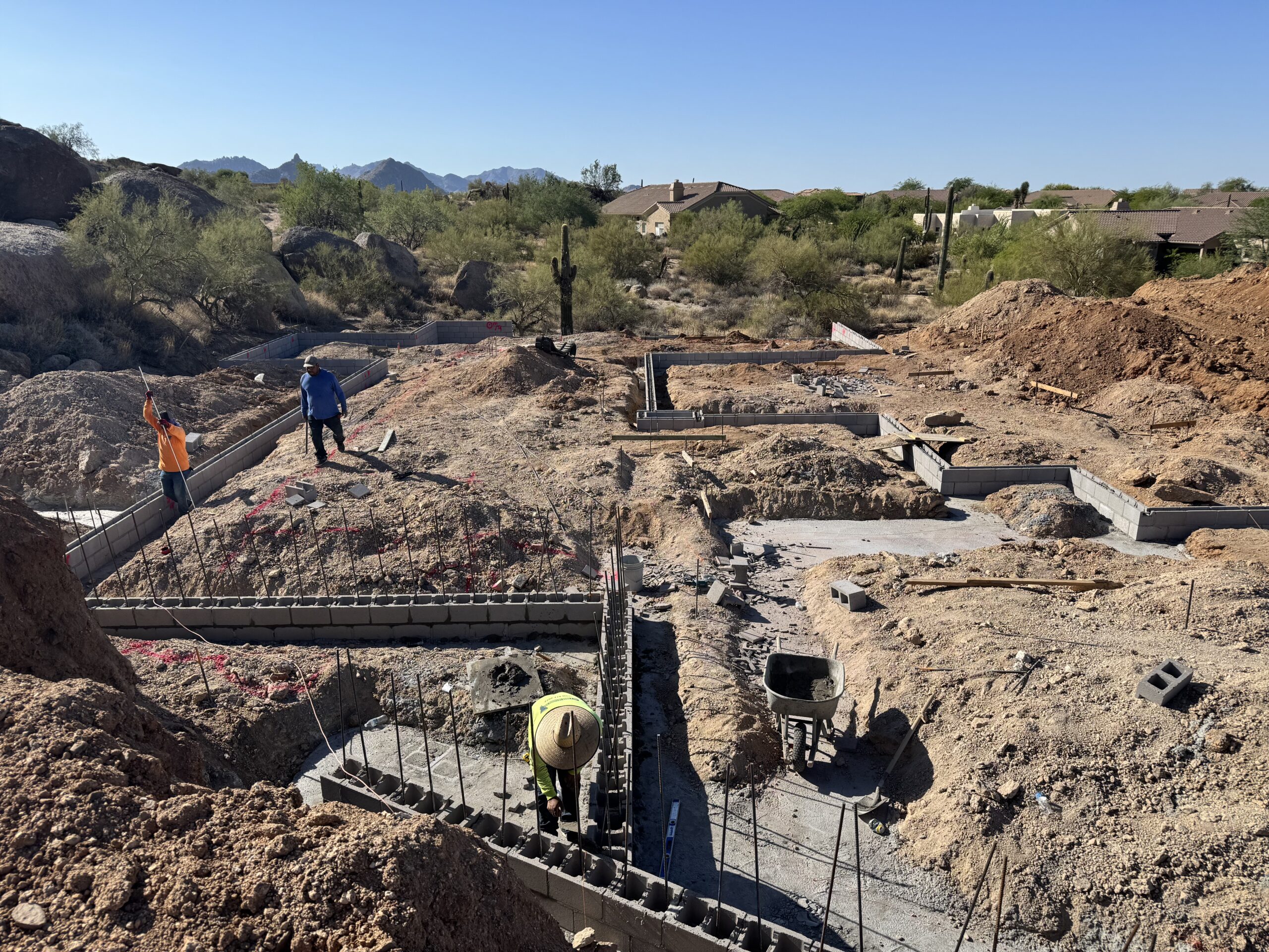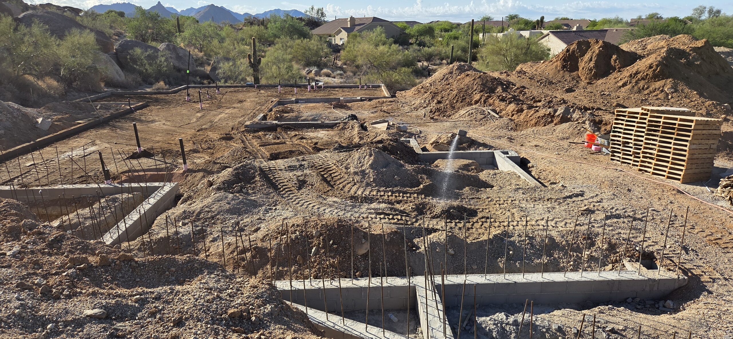 Inspection for stem walls passed and walls have been grouted. Rough plumbing has passed inspection. Shading over plumbing inspection is next. Then lot will be leveled and ab will be added and compacted making it ready for foundation and footing pour.