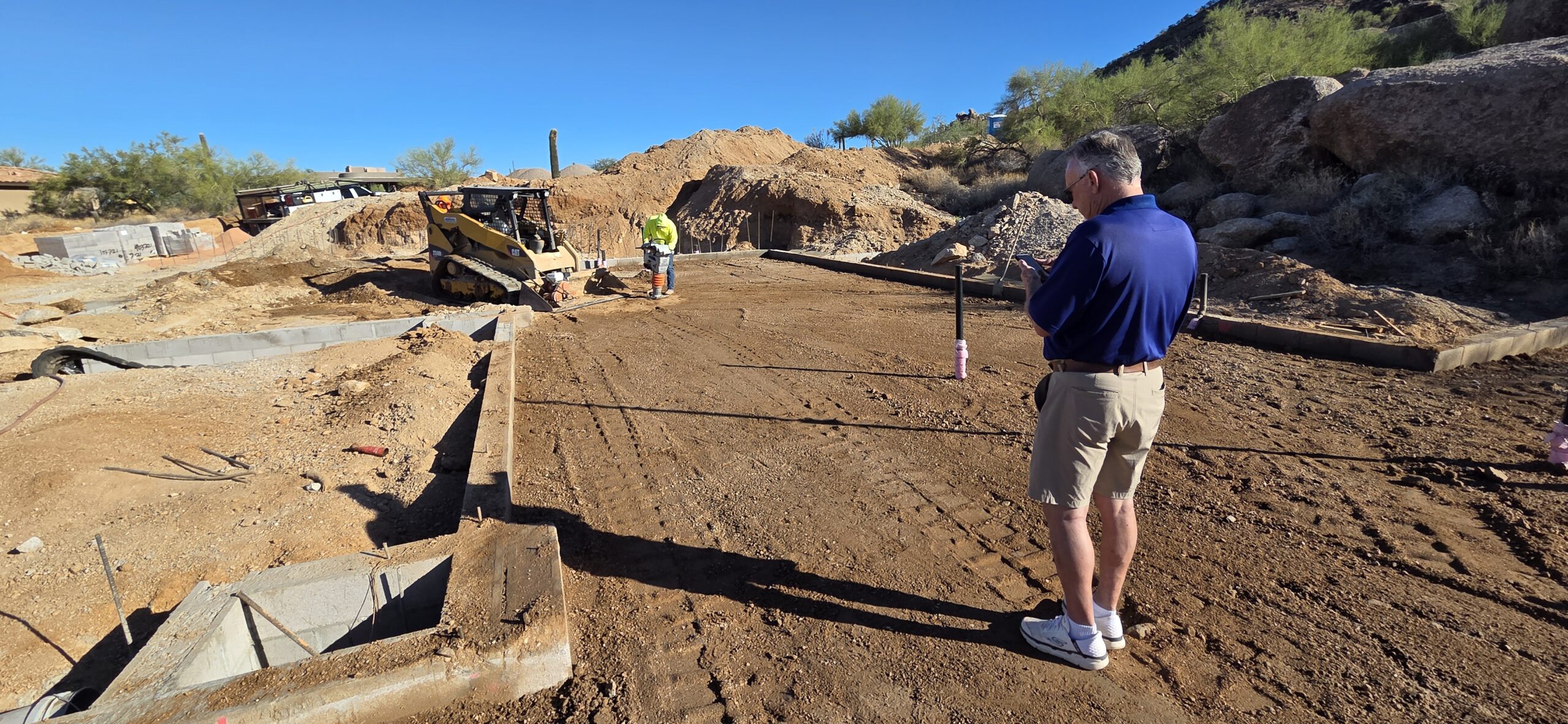 All rough plumbing has been covered with quarter minus and wrapped and has passed inspection. After passing inspection, pipes have been covered and now the pad is being cleared of excess dirt and ready for slab pour which included compacting the dirt and covering with AB. Pad should be ready for inspection next week with the slab pour to follow.