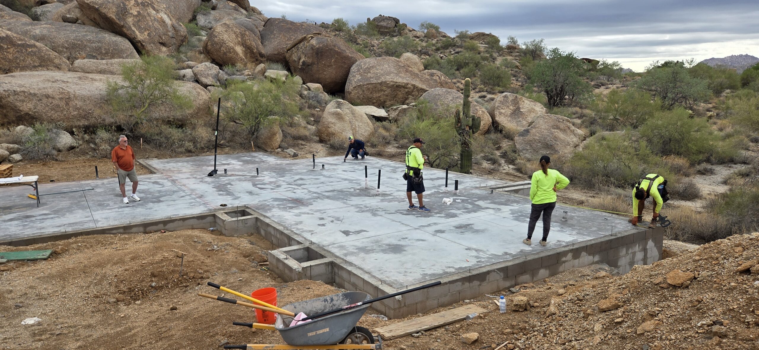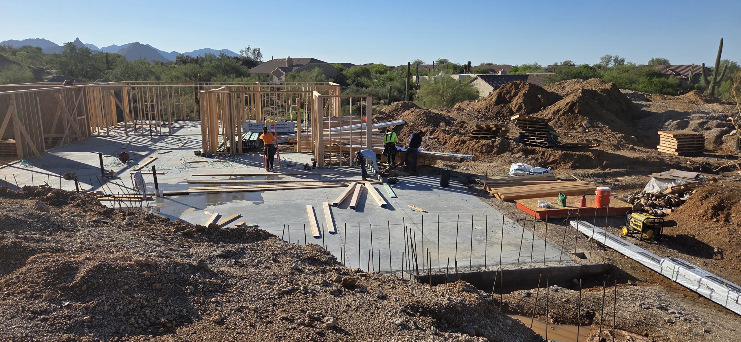Foundation pad has been poured and is ready for framing. Framing will start as soon as the lumber is dropped on Wednesday or Thursday of the week of 09-22-2025 (or this week).